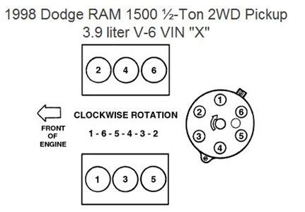 Need the firing order for a 1998 dodge ram 1500. And how it would look on the distributor cap thanks bob 5.2l and 5.9l engines firing order: Number 1 is on the drivers side on the front.